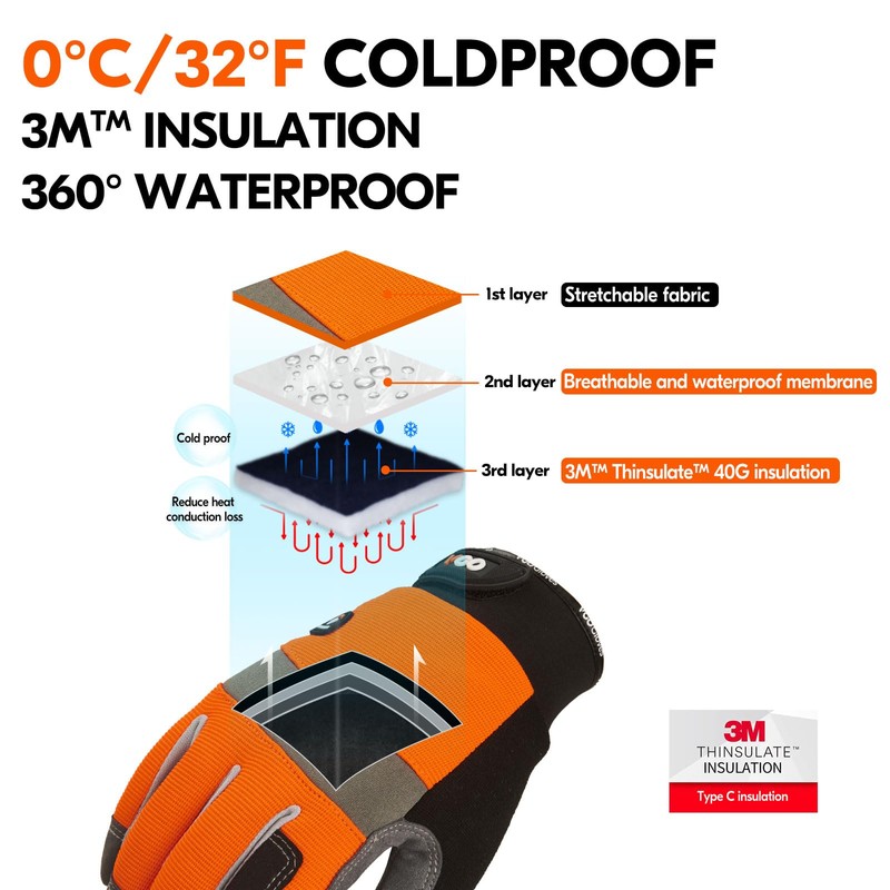 Vgo... Winter Work Gloves Waterproof Touchscreen, Utility Thermal Safety Gloves for Freezer Warehouse Delivery Light&Medium Duty in Cold Weather,1 pair