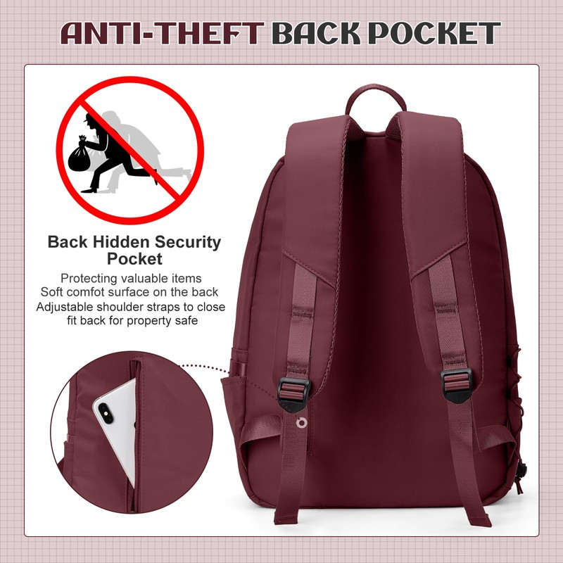 - Multi-functional Backpacks: This lightweight college backpack has multiple pockets, and the spacious main pocket can easily organize your cell phone, iPad, computer, camera, mug, clothes, wallet, umbrella and other daily items. Front zippered pocket is convenient for storing keys, passport and other items. Side pockets hold drinks, umbrellas and more. Hidden anti-theft pocket on the back protects your valuables.