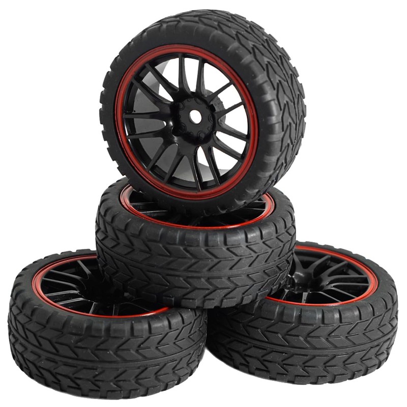 Vgoohobby 12mm Hex Wheel Rims & Rubber Tires Compatible with Redcat HPI Tamiya HSP RC 1/10 on-Road Touring Racing Car (Pack of 4)
