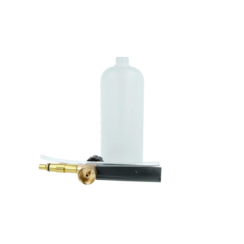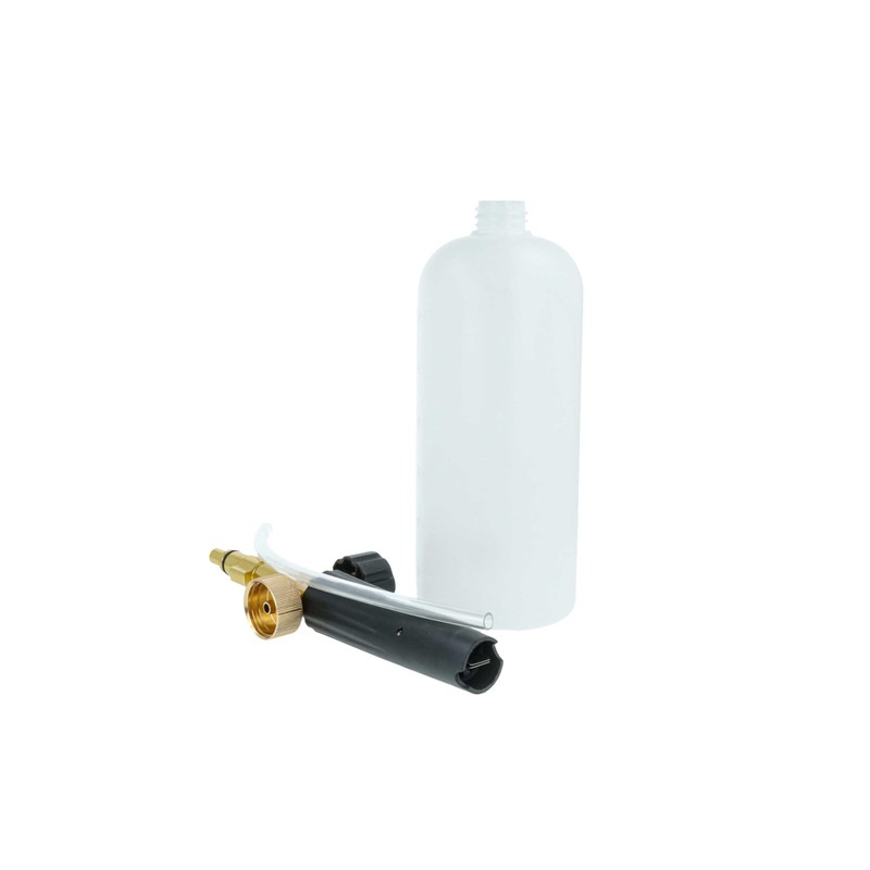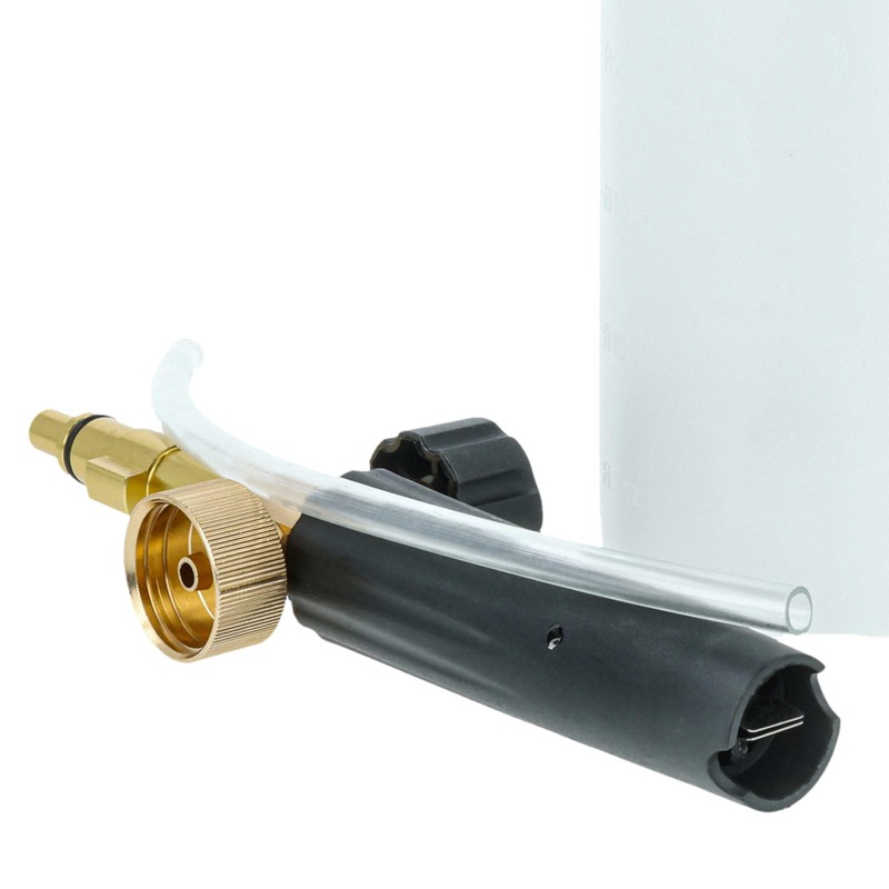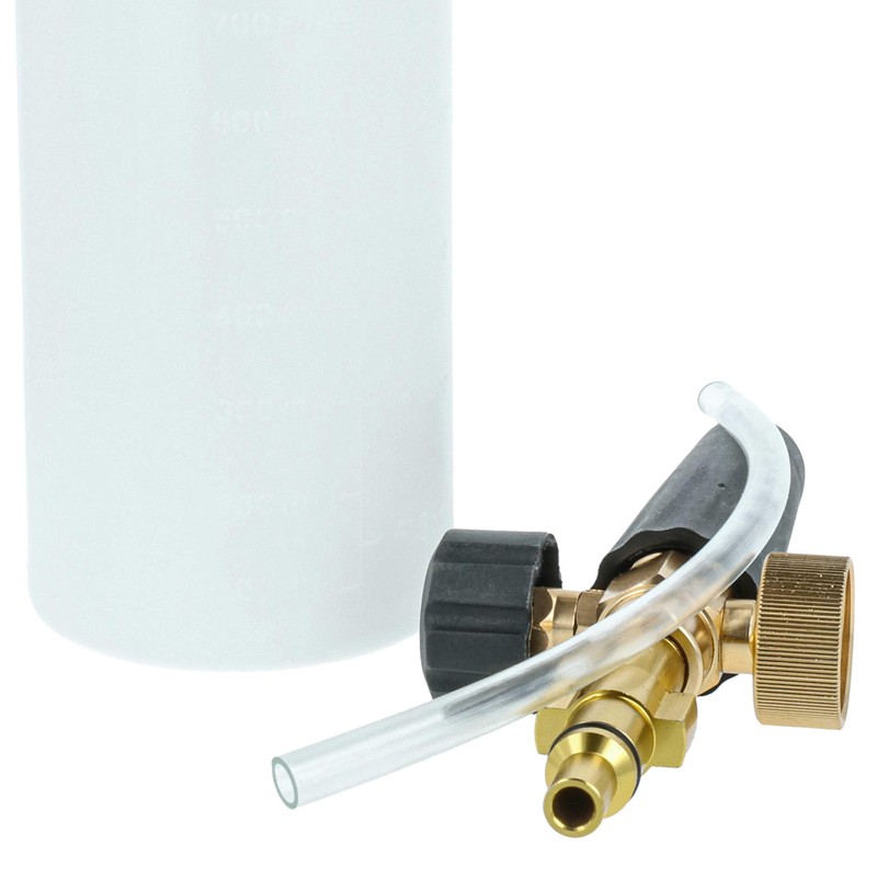 This foam lance is the perfect accessory for pressure washers to apply detergent in the form of a dense, adhesive foam. It consists of a high-quality foam nozzle, a robust suction hose and a generous container for holding the detergent. With its help, vehicles, facades, garden furniture and many other surfaces can be cleaned efficiently and thoroughly. The dense foam ensures that the detergent sticks to the surface for longer, so that dirt and debris can be optimally dissolved.