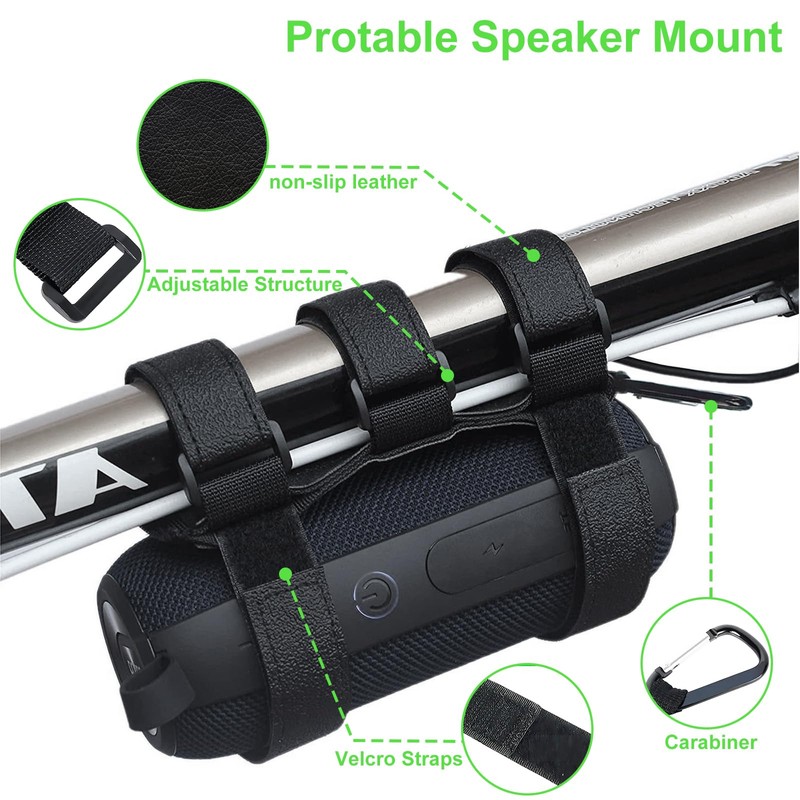 - Hands Free: Portable speaker mount designed for cycling, golfing, boating and hiking. 3 non-slip adjustable straps will attach the Bluetooth speaker to the rail firmly, like bike, golf cart, boat, motorcycle etc. Enjoying your music anywhere.