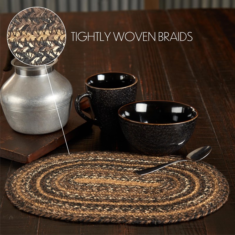 VHC Brands Country Espresso Table Placemat Brown Black Tan Jute Blend Oval Set of 6 10x15 Inches