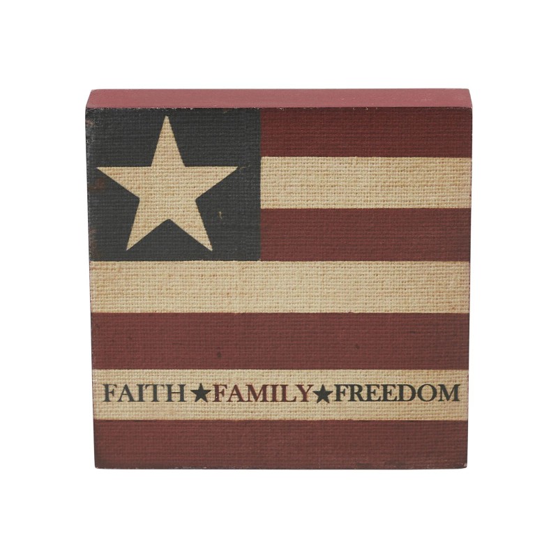 Faith Family Freedom on Flag MDF Block Sign 5x5x1