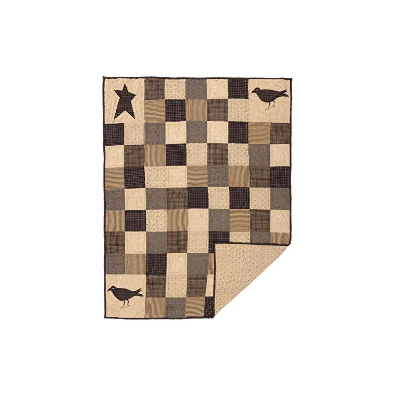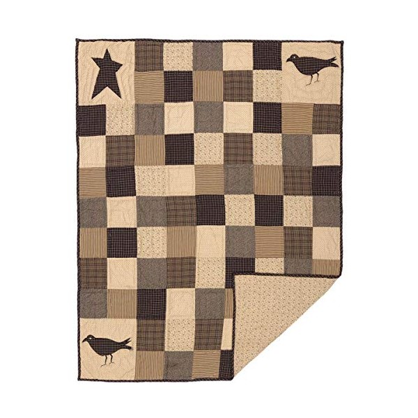VHC Brands Kettle Grove Crow and Star Cotton Primitive Decor Rod Pocket Pre-Washed Appliqued Throw, 60x50, Patchwork