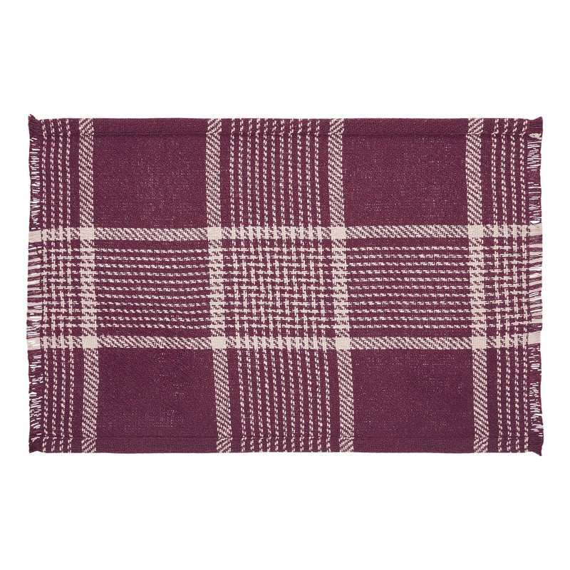 Create the perfect table settings with a timeless feel. The Eston Burgundy Tan Plaid Placemat Set includes two placemats measuring 13x19 inches each. The table place settings are constructed with a single layer of a cotton polyester blend and includes a fringed edge. The deep red base features deep tan stripes in a traditional tartan plaid pattern.
