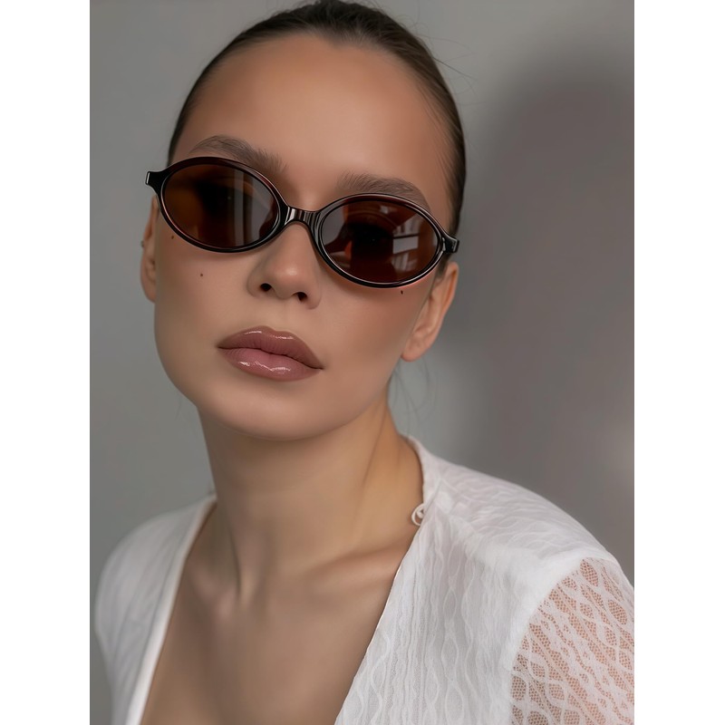 VIA LEECA Retro Oval Sunglasses for Women Cute 90s Small Oval Sun Glasses, Brown Frame Brown Lens, Medium