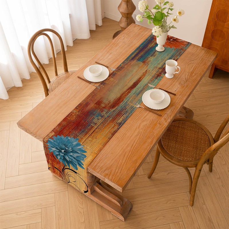 ViaElayu Table Runner Orange Retro Table Runner with Flower Farmhouse Table Decoration Rustic Oil Painting Table Runner Accent Table Decorative Cloth 40x140cm for Kitchen Coffee Holiday Parties