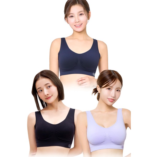 (Viage) Beauty Up Bra, High Underarm Design, Wireless, Back Compression Design, No Tightening, Set of 3, 6 Sizes, black/navy/purple, M