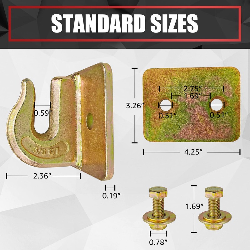 [Versatile Functionality] The grab hooks are designed to work seamlessly with chains and ratchet binders, providing a reliable solution for securing your load or serving as tow anchors. They are also perfect tow hooks for use with tractor buckets, RVs, UTVs, and trucks.
