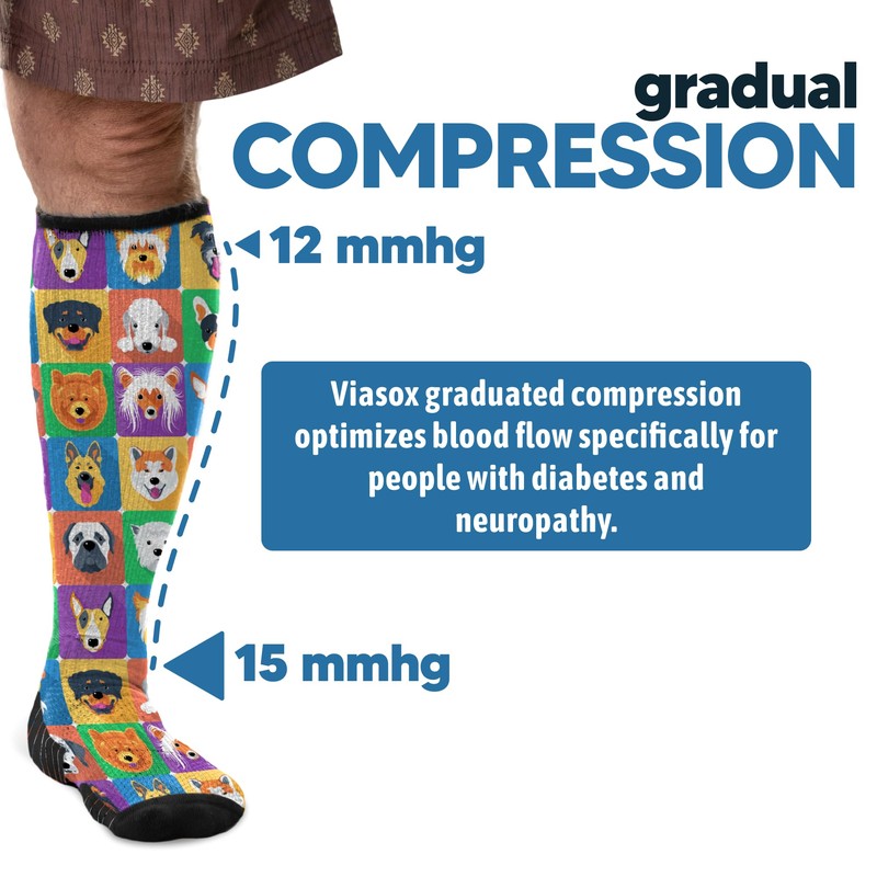Viasox Compression Socks for Women and Men, Knee High Socks 12-15 mmhg Circulation Support for Flight, Travel, Daily (CA/US, Alpha, Medium, Regular, Regular, Dogs)