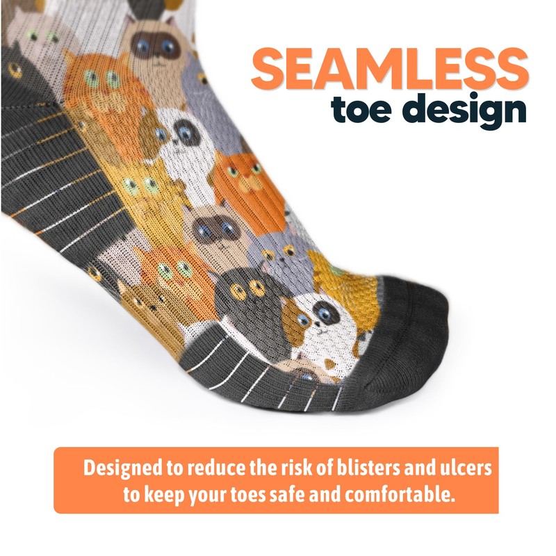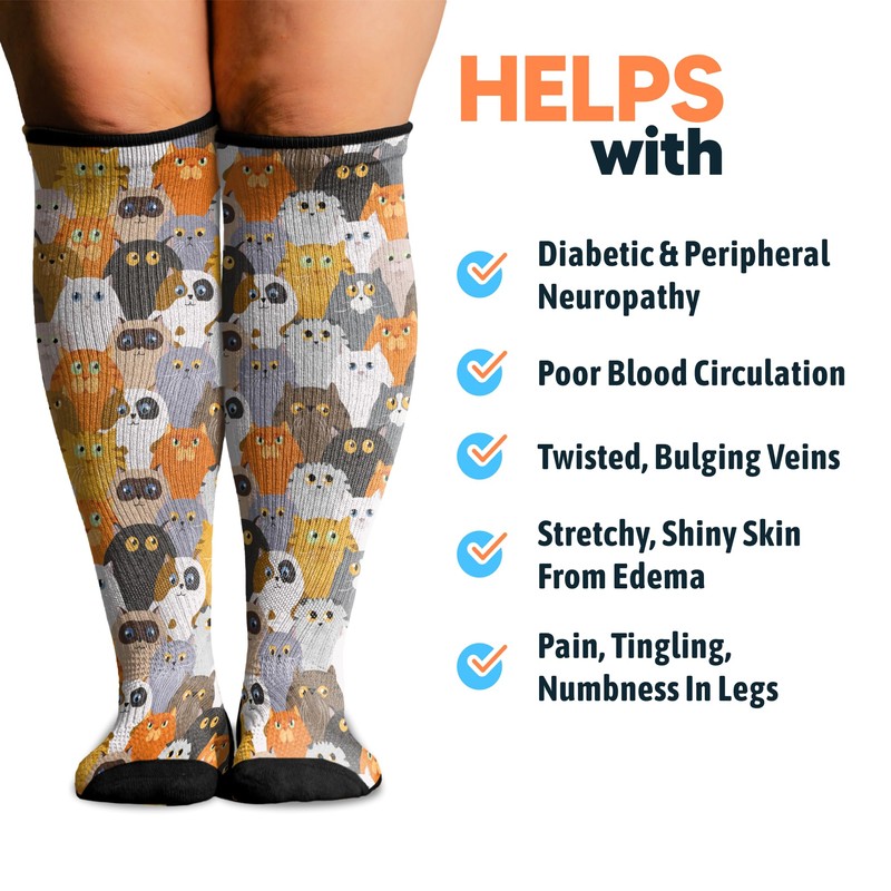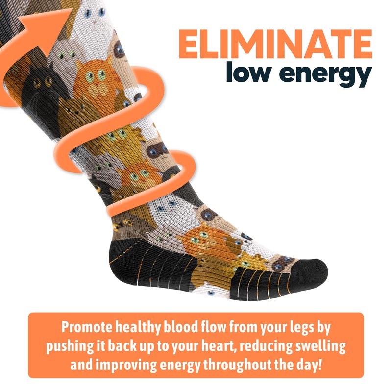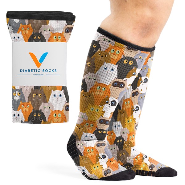 Viasox Compression Socks for Women and Men, Knee High Socks 12-15 mmhg Circulation Support for Flight, Travel, Daily (CA/US, Alpha, X-Large, Regular, Regular, Cats)