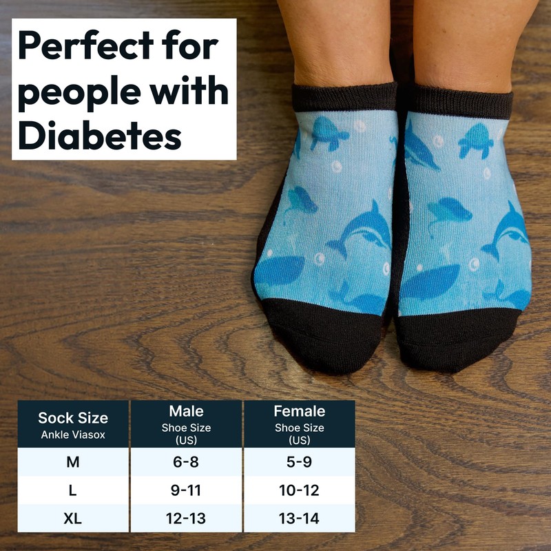 - FITS ALL LEG SIZES : Low cut, just below the ankle. Offers a stretchy feeling similar to Viasox EasyStretch Diabetic Socks. Accurate fit according to the sizing guide.