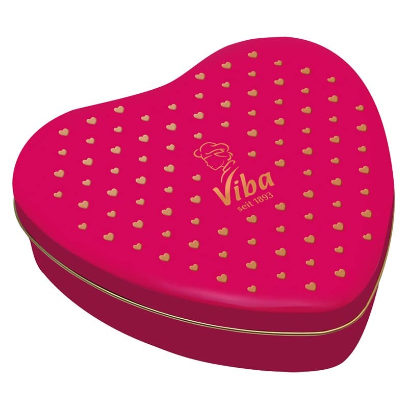 Viba Gift box heart 90 g (mix of hazelnut nougat minis; tin 3 assorted designs; random design). Give from Herzen Schenken is the most beautiful gift you can give your loved one. And it's so easy: give the sweet variation of Viba Classic, Noir and Layer Nougat from the heart. A true thing of the heart! Valentine's Day for your loved one, Mother's Day for mum or just because. Included are 9 nougat minis of 10 g. The gift box is 3 assorted in three different designs. The design will be selected at random. Product dimensions: 10.5 cm x 11.5 cm x 4 cm Viba gift box heart, 90 g Ingredients: sugar, 32% roasted hazelnuts, cocoa mass, cocoa butter, whole milk powder, emulsifier: soy lecithin; bourbon vanilla. May contain peanuts, other peel fruits and gluten-containing cereals. Protect from heat and store in a dry place. Avoid strong temperature fluctuations. Average nutrition information per 100 g, energy 2320 kJ (556 kcal), fat 35.4 g, of which saturated fatty acids 10.4 g carbohydrates, 48.9 g of which sugar, 48.2 g, protein 7.9 g, salt 0.03 g