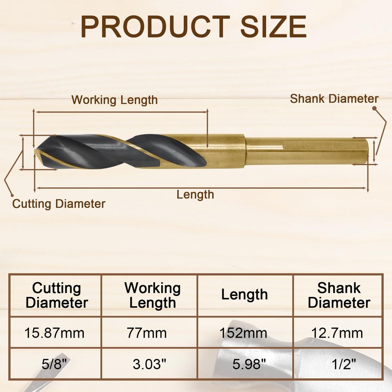 - Reduced Shank Feature: 1/2 Reduced Shank Drill Bit expands the size range of portable drill chucks and reduces tool adjustments when changing tools.