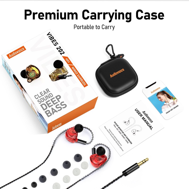 - Convenient & Practical: Requiring no Bluetooth or batteries, Vibes 202 earphones are perfect for flights and travel. It includes a premium carrying case for convenient storage. Available in 3.5mm, USB-C, or Lightning versions, they suits various devices. What’s in the Box: Vibes 202 HiFi Headphones, 6 pairs of eartips, carrying case, carabiner, user manual.