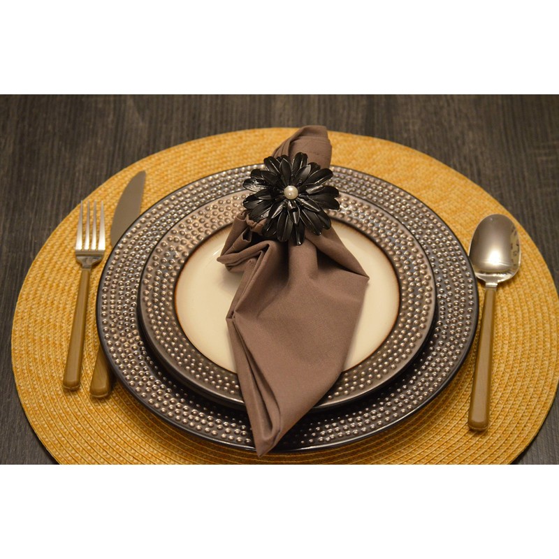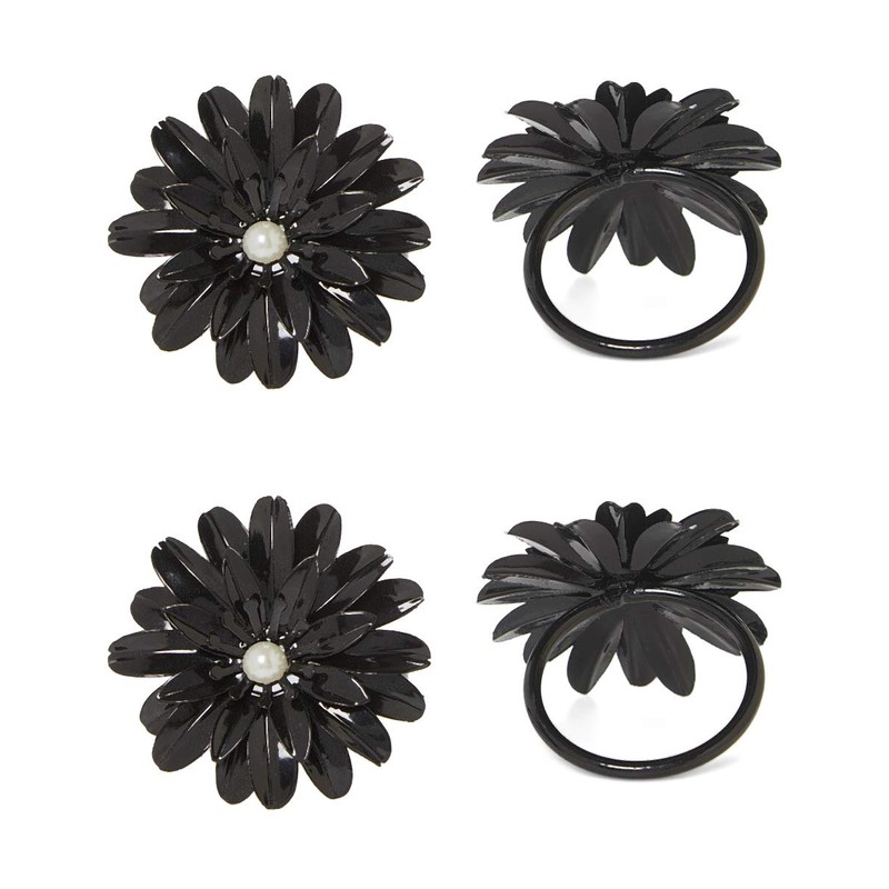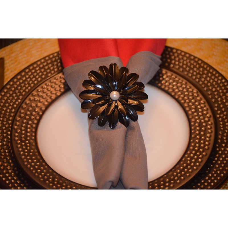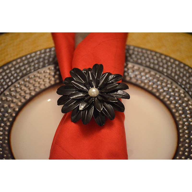 - Handcrafted Luxurious Floral Napkin Rings Set of 4. Black Flowers with Pearl. Flower Size 2.0" Ring Size 2.5" Set of 4. Long Lasting and Reusable. Hand Painted Products