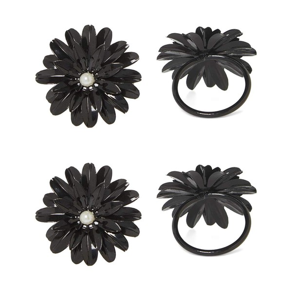 Vibhsa Handcrafted Flower Napkin Rings (Set of 4, Black)