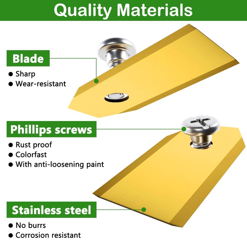 - 【Leicht zu ersetzen】 Die Rasenmäher Klingen sind sehr einfach zu installieren, mit den mitgelieferten Schrauben, können Sie sie mit einem gewöhnlichen Schraubendreher ersetzen, einfach die Installation abzuschließen, spart Zeit und Mühe.