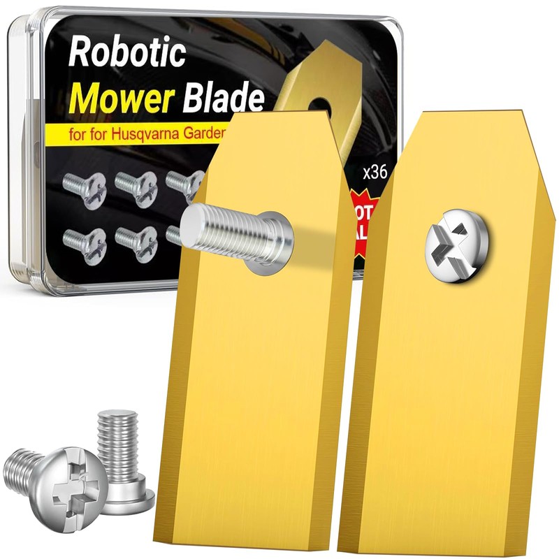 VIBINHO 36 Stück Mähroboter Klingen, Mähroboter Messer mit 36 Schrauben, Rasenmäher Klingen aus Edelstahl Kompatibel mit Husqvarna, Gardena, Yard Force, Ferrex, McChulloch