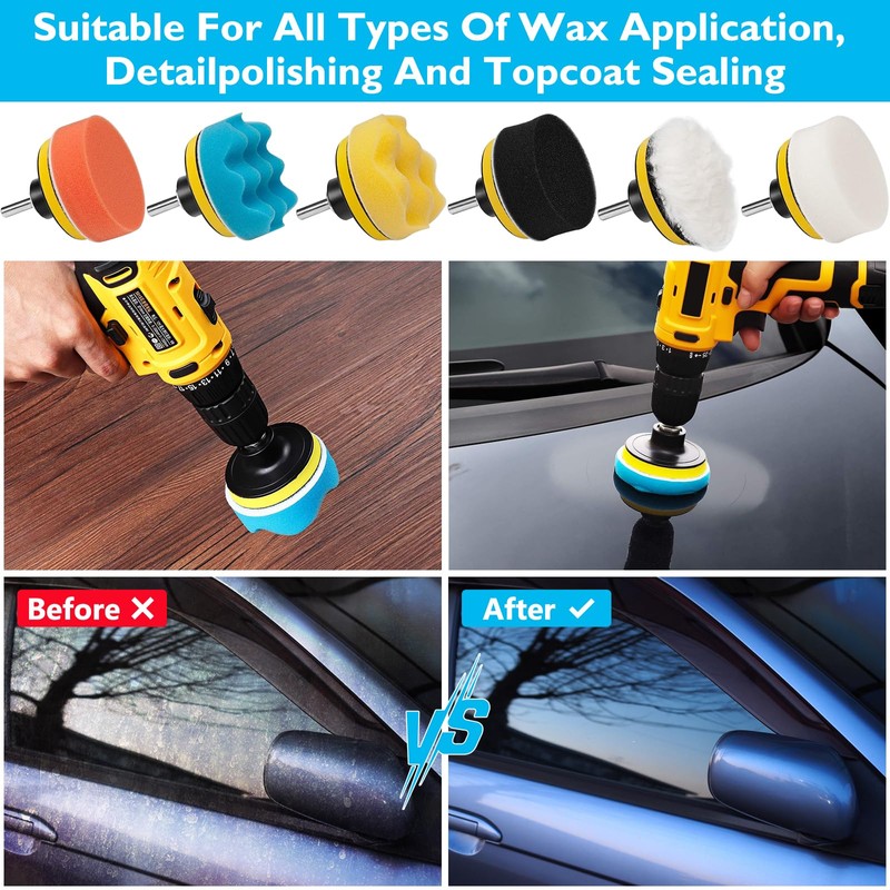 - 【Excellent Results】Orange/white sponge for coarse polishing, yellow/black/blue sponge for medium/fine polishing. Wool sponges have a soft texture and leave no residue when polishing. They remove oxidation and scratches with ease and can be used for waxing, sealing and cleaning.
