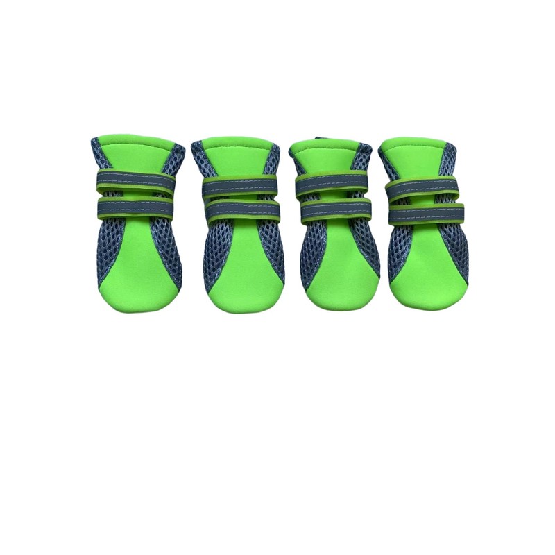 Vibrant Fellow Paw Protector Dog Boots Breathable and Skid-proof with Reflective Straps Bright Green Size Small and Medium Set of 4 (Size Small - Inner Sole Width 1.57 Inch)