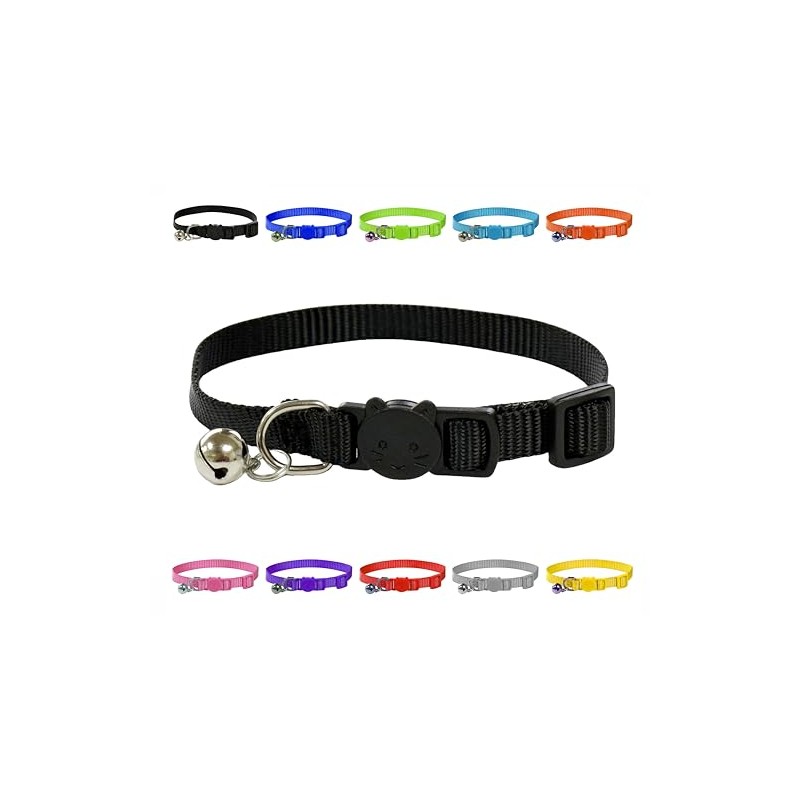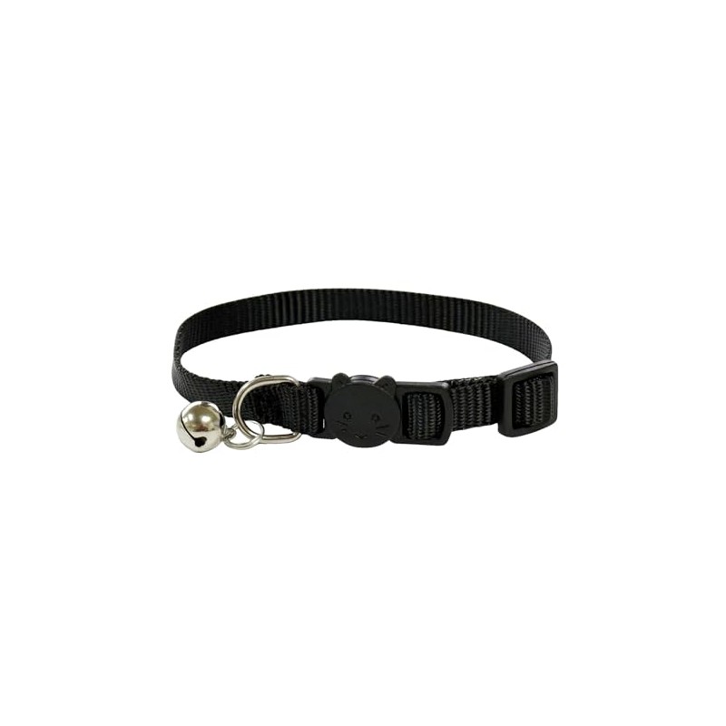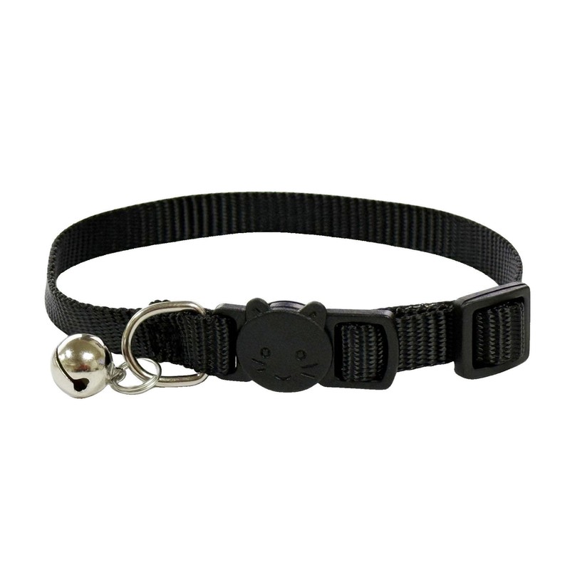 Vibrant Soft Nylon Kitten/Cat Collar with Bell and Safety Release Buckle (Black)