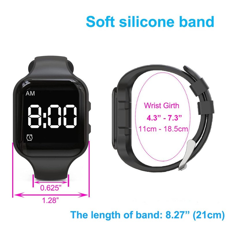 - Safety tested – the improved vibrating watch is lightweight, made of soft silicone strap, specially designed for approx. 4" to 7" wrist.