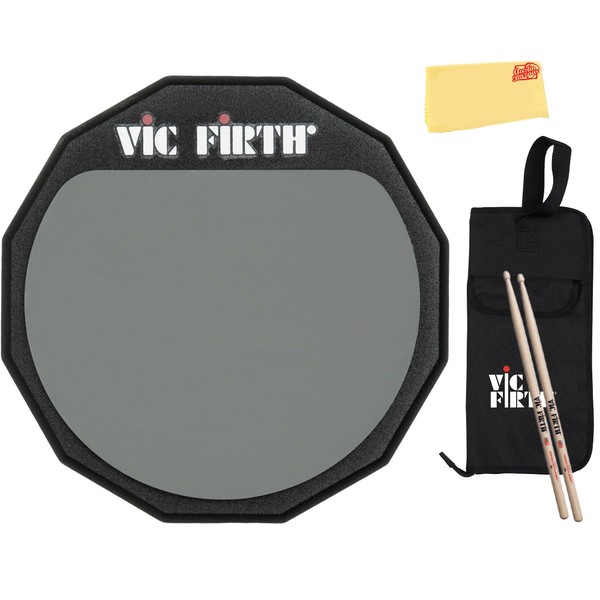 - Bundle includes (1) Vic Firth 6" Double Sided Drum Practice Pad, a Pair of Vic Firth 5A American Classic Wood-tip Drumsticks, (1) Vic Firth Basic Stick Bag, and an exclusive Austin Bazaar Polishing Cloth