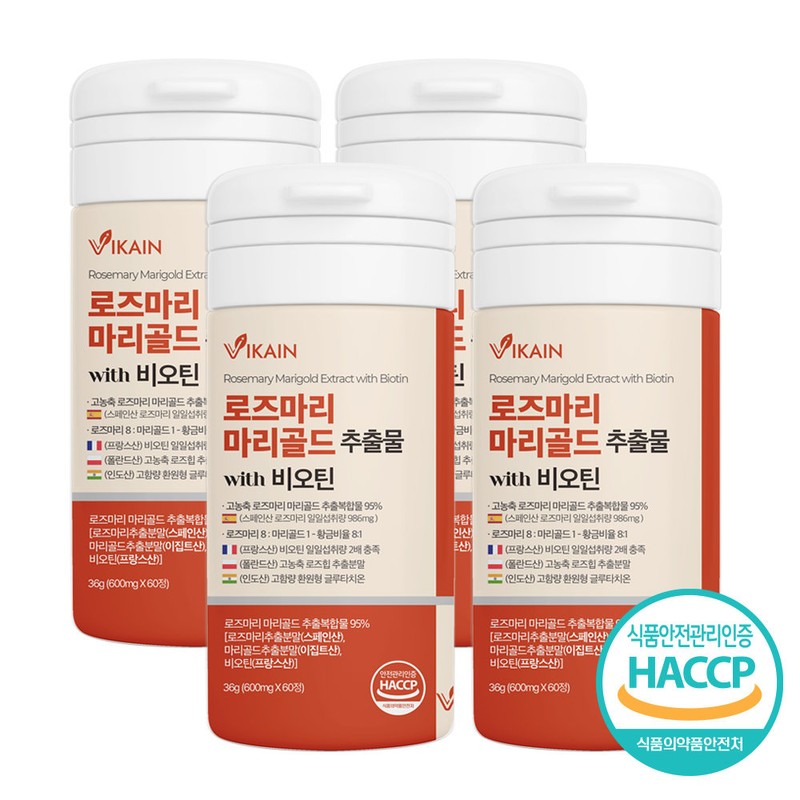 Vicain Rosemary Extract Marigold Extract with Biotin 600mg x 30 tablets x 4 bottles / 비카인 로즈마리추출물 마리골드 추출물 with 비오틴 600mg x 30정 x 4병