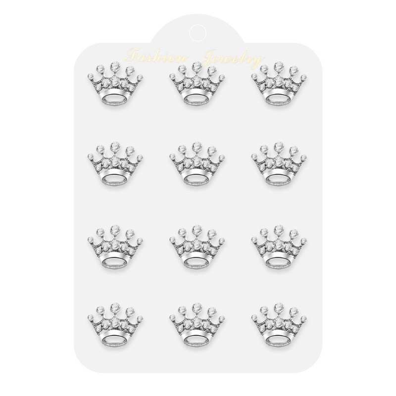 The item is a set of 12 fashion diamond pageant tiara crown corsage brooch. An elegant, shiny diamond tiara crown design brooch. It is a perfect exquisite decoration that matches clothes, bags, hats and scarves for all occasions.