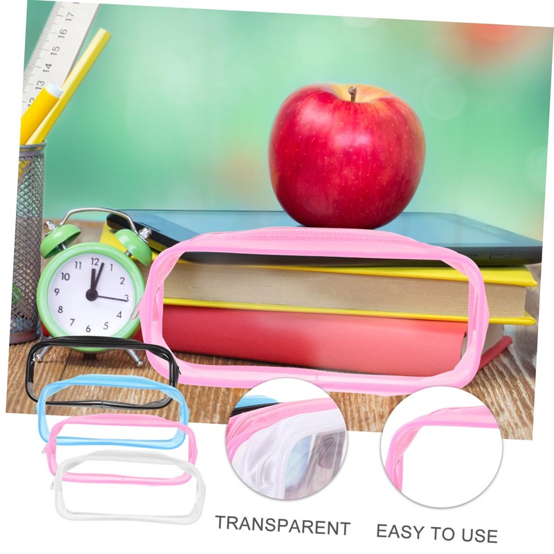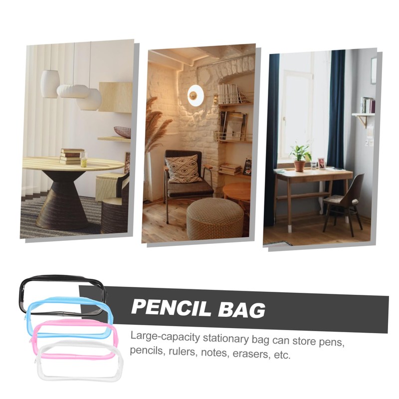 VICASKY 4Pcs Multi Use Transparent Pen Bag Large Capacity Stationery Organizer for Pens Pencils and Items Lightweight and Durable Zipper Design