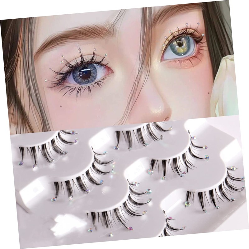 VICASKY 5 Pairs Long False Eyelashes with Rhinestones Decorative for Parties Festivals and Outdoor Activities Eye Catching Eyelash Extensions for Enhanced Glamour and Confidence
