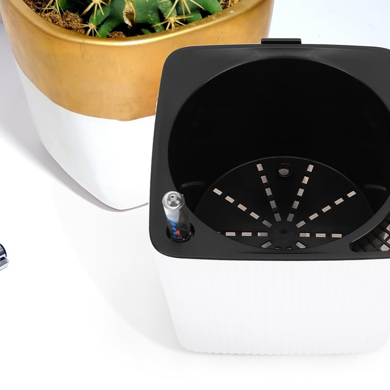 - Flower Box Water Level Indicator When the planter is without water, the float of the water level indicator is at the bottom. When the watering amount is correct, the planter floats upwards.