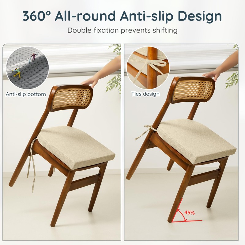 - Dual Anti-Slip Design: Silicone anti-slip granules on the bottom, paired with adjustable ties, ensure the cushion stays securely in place on any chair; Whether for family dinners or children's homework sessions, the non-slip chair cushions set of 4 stays securely in place