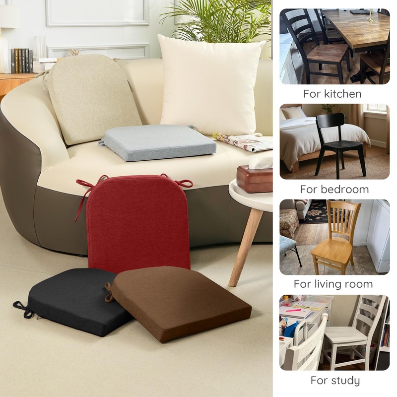 - Comfortable Support: Filled with high-resilience foam, these dining chair cushions provide even support, effectively relieving tailbone pressure and reducing fatigue from prolonged sitting; The 2-inch design perfectly contours to your body, delivering all-day comfort for dining, working, or relaxing