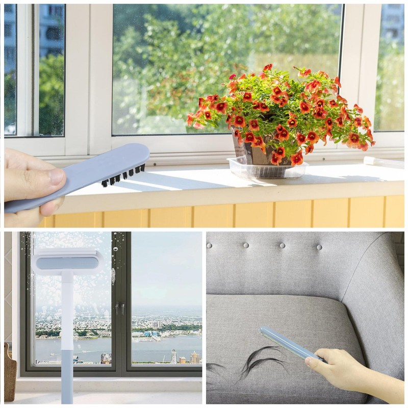 - Multi-purpose animal hair brush: this cleaning brush is great for a variety of surfaces such as bedding, walls, glass and more, with its dense micro bristles, it effectively removes dirt, dog or cat hair and lint from fabrics and all surfaces.