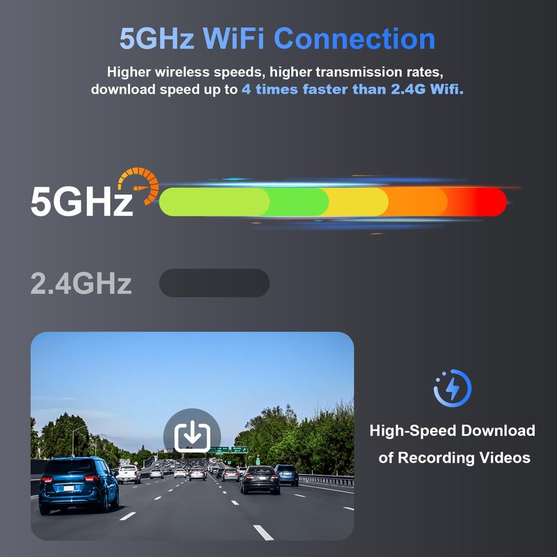 - 【5G WiFi & GPS Tracking】 Compatible with 5G(5.8G) & 2.4GHz WIFI,enjoy faster wireless data transfer and conveniently share videos on social media while on the go.The built-in GPS allows your car dash cam to accurately record driving location and speed. You can use the app or our GPS player to view your driving route and tracker on the app via Wi-Fi.