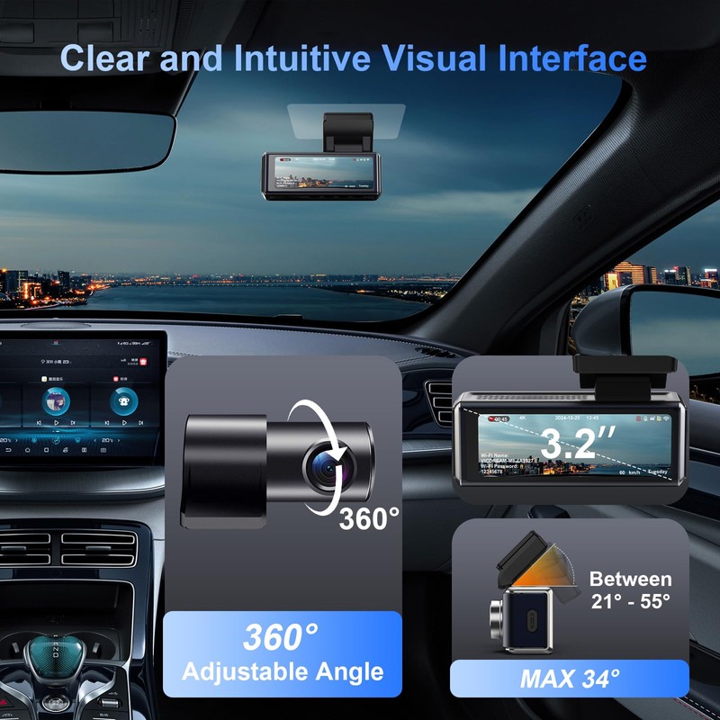 - 【170°Wide-Angle View & Superior Night Vision】Equipped with a 170° front facing and 170° rear camera lens, this automobile dash cam covers a wide area around your vehicle. The 3.2 inch IPS Screen provides a clear and convenient interface for reviewing footage.The advanced night vision technology ensures clear footage, to ensure that it can record vivid colors and true clear details in low-light and complex light motion environments, making night driving safer.