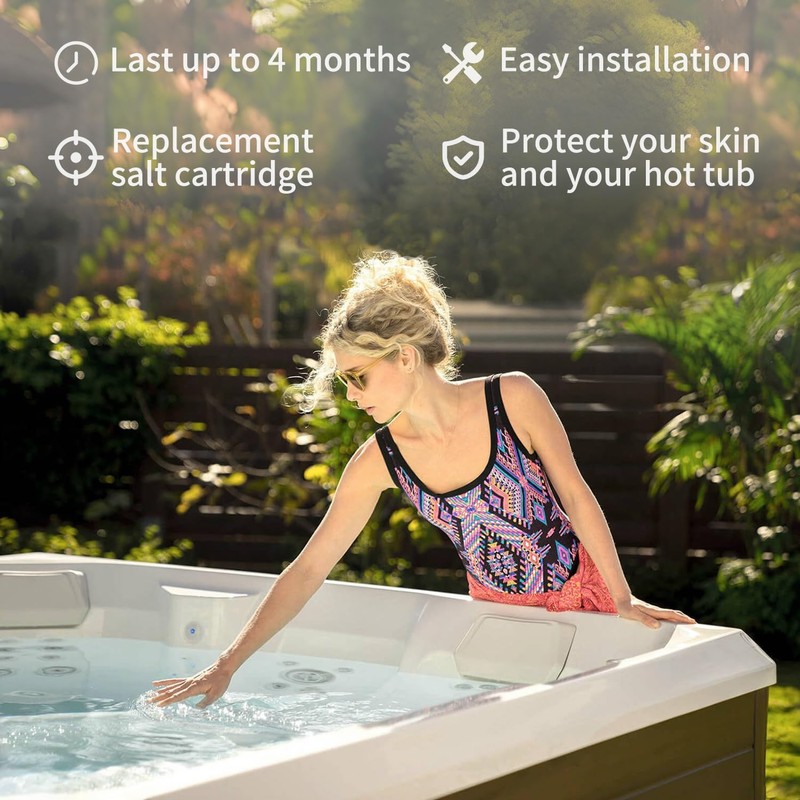 - 【ECONOMICAL CHOICE FOR WATER QUALITY IMPROVEMENT】Salt system cartridges combined with the salt system of the hot tub can effectively reduce water hardness, reduce the formation of scale and sediment, and keep the bathtub water clear and transparent. Each salt system filter has a service life of up to 4 months and does not need to be replaced frequently.