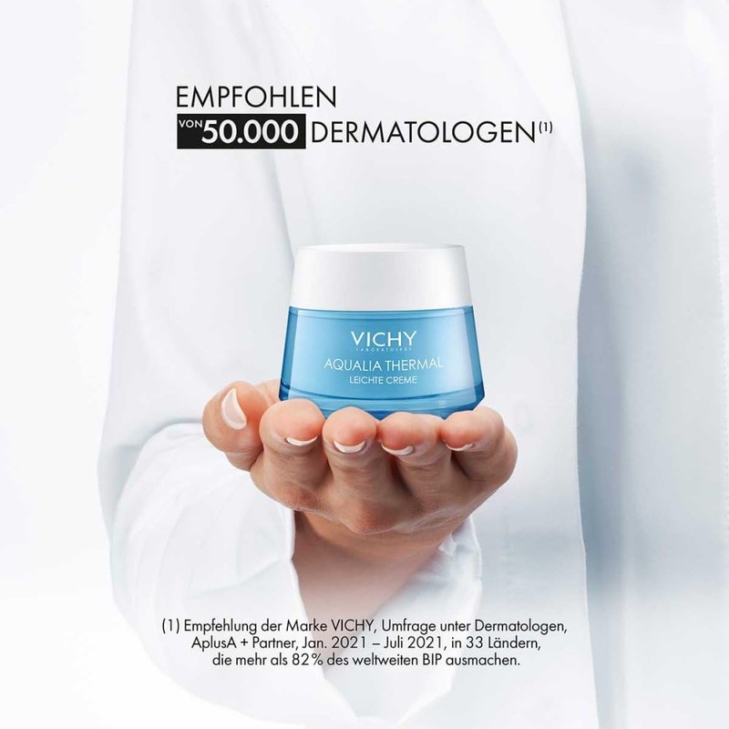 Aqualia Thermal counteracts this moisture loss and gives the skin pure re-hydration. The carefully selected composition of hyaluronic vegetable sugar and mineralising Vichy thermal water provides the skin with immediate and long-lasting moisture. The skin is instantly refreshed and feels plumped and velvety soft.