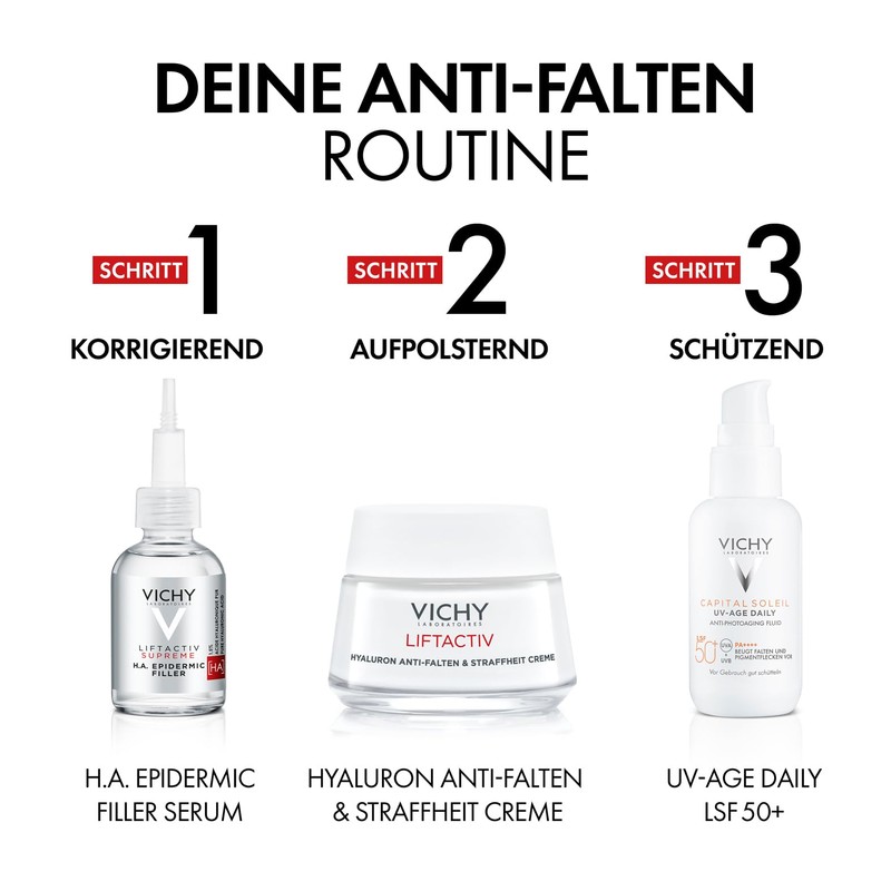 VICHY Hyaluronic Anti-Wrinkle & Firmness Cream, Reduces Visible Signs of Ageing: Adenosine and Rhamnose Activate the Skin's Own Collagen Production, Liftactiv, 50 ml