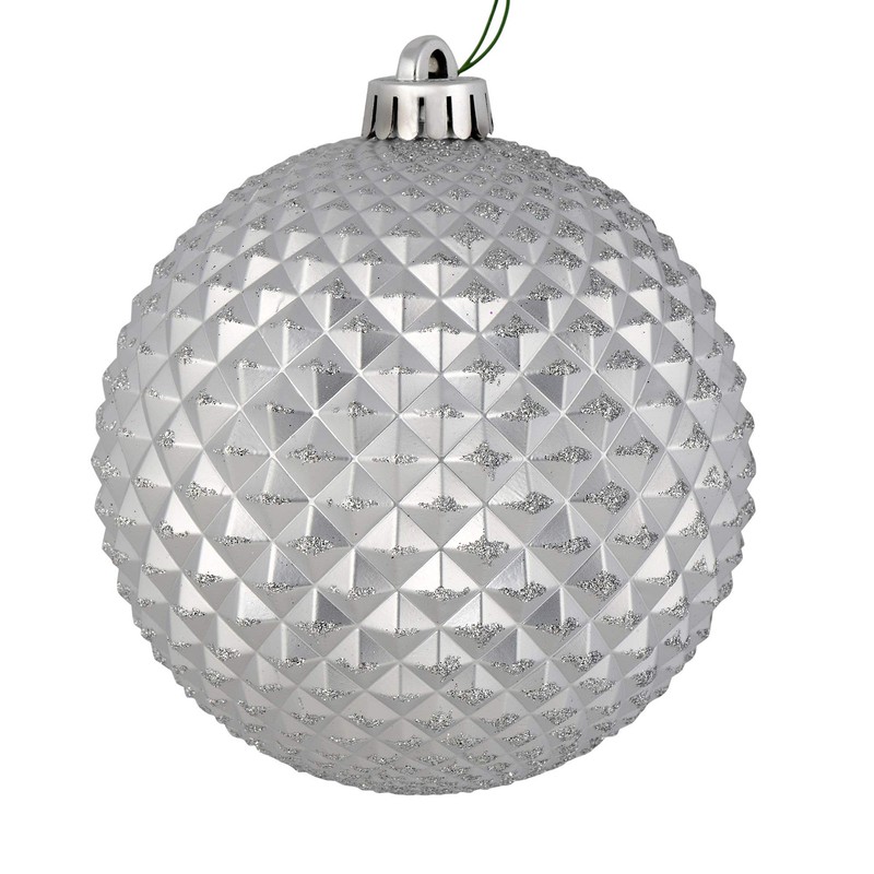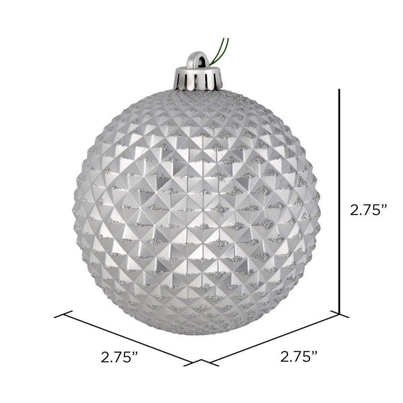 Vickerman 2.75" Silver Durian Glitter Ball Ornament. Includes 12 Ornaments per Pack.