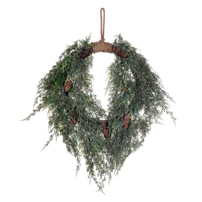 Vickerman 24" Artificial Snow Cedar Hanging Wreath with Pinecones - Cedar Fol...