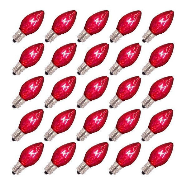 Vickerman 297179-5 watt 130 volt C7 Candelabra Screw Base Transparent Pink (25 pack) Christmas Light Bulbs (V471739-25)