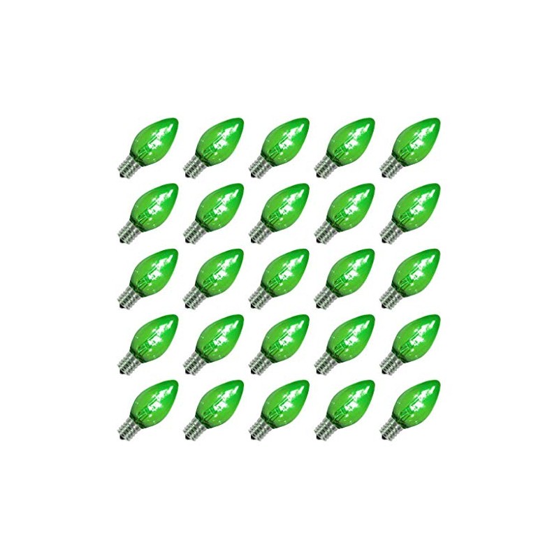 Vickerman 509708 - C7 Candelabra Screw Base Green Transparent Dimmable LED (25 pack) Christmas Light Bulbs (XLEDTC74-25)