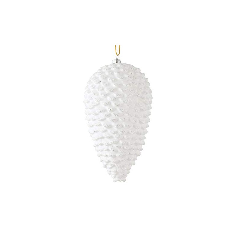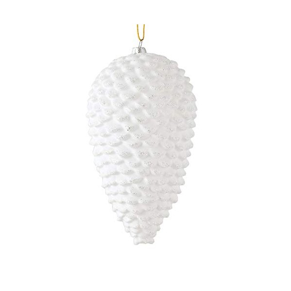 Vickerman 7" White Matte Glitter Pinecone Christmas Ornament - Set of 4 - Large Pinecone Ornaments for Christmas Tree - Secured with Green Floral Wire - Ready to Hang