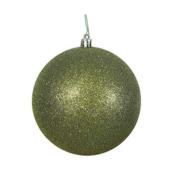 Vickerman N591014DG Glitter Ball Ornaments with Shatterproof UV Resistant, Pre-drilled cap Secured & 6" of Green Floral Wire in 6 per bag, 4", Olive