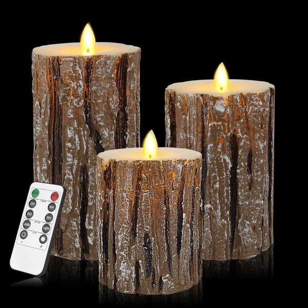 Vickiss Flameless Candles Battery Operated Candles 4" 5" 6" Set of 3 Birch Effect Real Wax Pillar LED Candles with 10-Key Remote and Cycling 24 Hours Timer