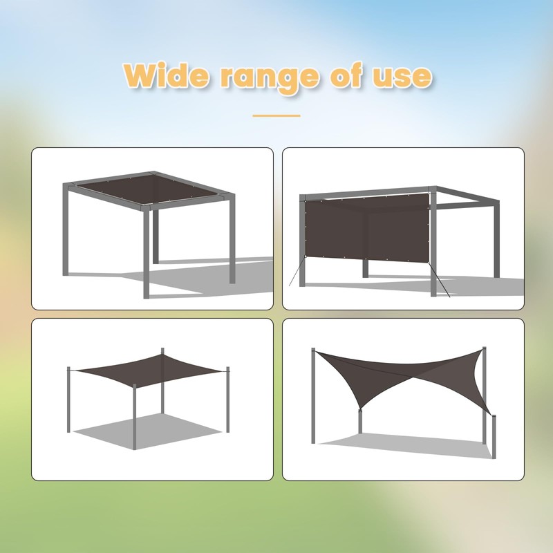 - Multi-Surface Sun Protection: these sun shade canopy is perfectly sized for patios, garden greenhouses, chicken coops, RV awnings, carports and playgrounds. Reduces surface temperature by 27℉ - ideal for summer BBQ parties, plant nurseries and pet shelters