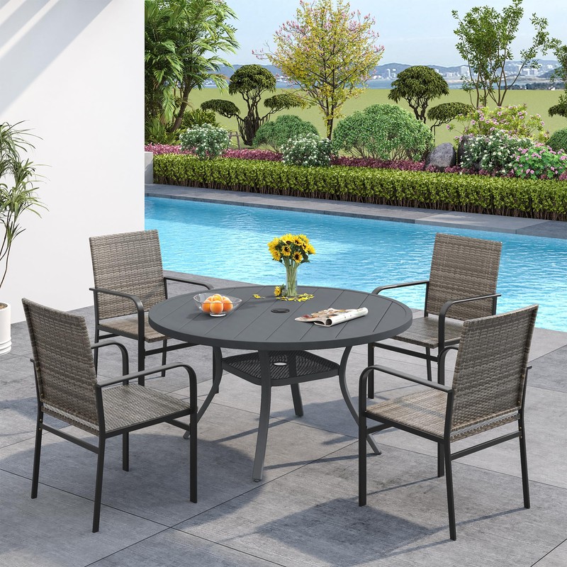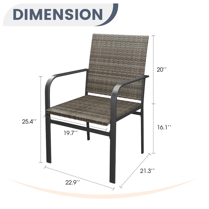 - STURDY & DURABLE: The metal frame of the patio chair is processed by high-performance powder-coating technique, extending protection against rust, scratches, and rain. With the technology, this patio dining set can withstand all weather.